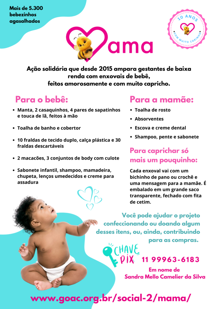 Ao longo de todo o ano, como acontece desde sua fundação em 2015, as abelhinhas do MAMA — como carinhosamente são chamadas as voluntárias — dedicam-se à confecção e montagem de centenas de enxovais, feitos com o mesmo cuidado e ternura de quem prepara algo para os próprios netinhos.