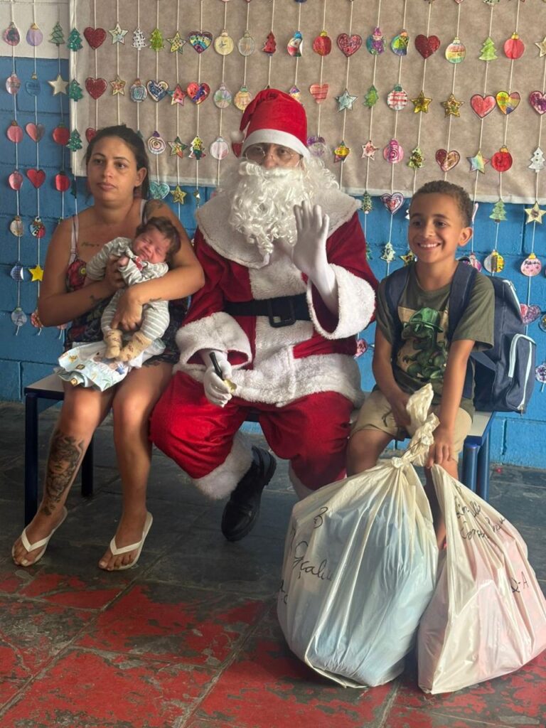 Neste ano, uma novidade especial encantou a todos: um totem de fotos com o Papai Noel, permitindo que as famílias registrassem esse momento e saíssem com a foto impressa na hora — uma lembrança cheia de afeto para guardar no coração.