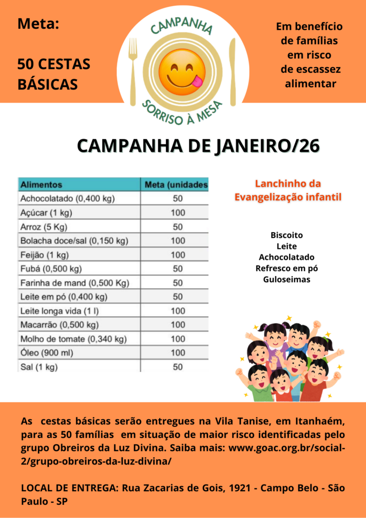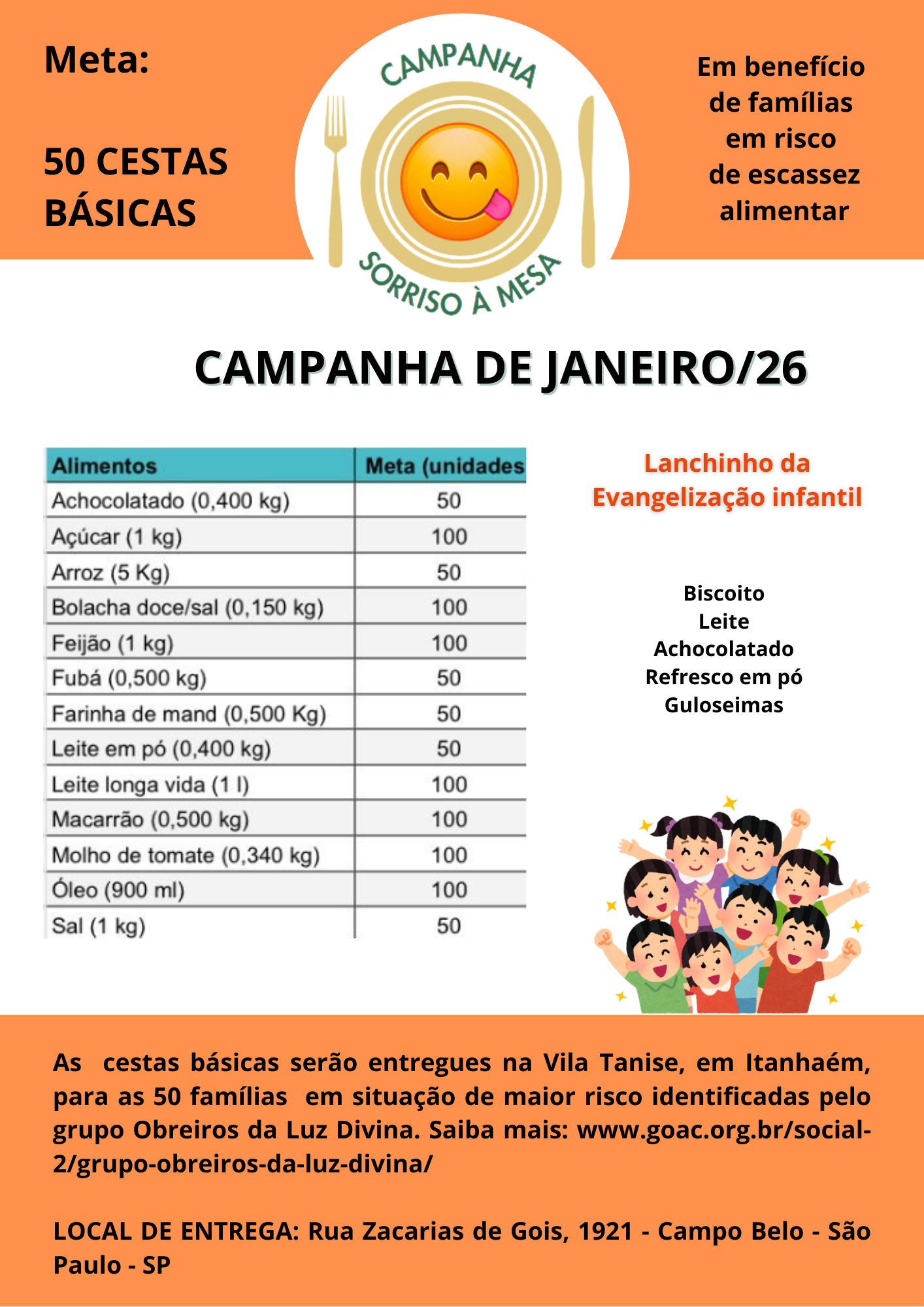 A campanha de Natal deste ano, em benefício das famílias da Vila Tanise, em Itanhaém, foi mais uma vez um grande sucesso. Superamos a meta e atingimos 390 cestas!