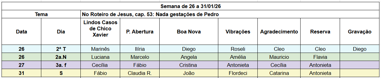 Reunidos em prece e gratidão, recordamos seus ensinamentos de amor, humildade e serviço, que iluminam nossos caminhos e despertam em cada espírito a centelha divina da luz.