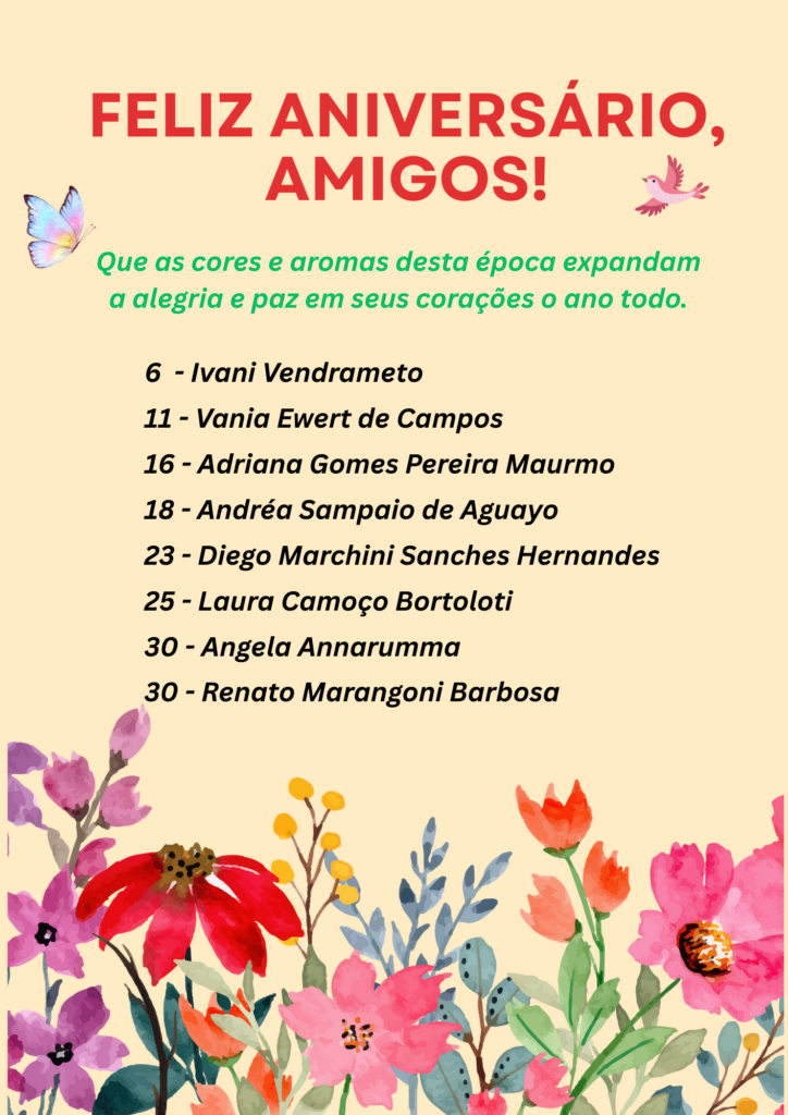 Terapeuta Sol – Solange Nader Miziara (cooperadora aos sábados). Formada em Terapia Floral e Constelação Familiar, entre outras Terapias Integrativas e Complementares. WhatsApp : 11 97201-4386.